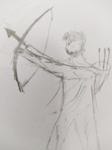 C’est alors qu’Amphinomos se réveilla et il vit Antinoos et Eurymaque qui faisaient une compétition d’arc. Alors il demanda s’il pouvait les rejoindre (…)